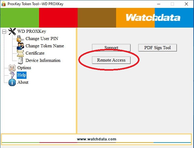 - Locate WD ProxKey Icon on the desktop, double click to open the token utility,Click on “HELP” option and then on “Remote Access” in the right hand side